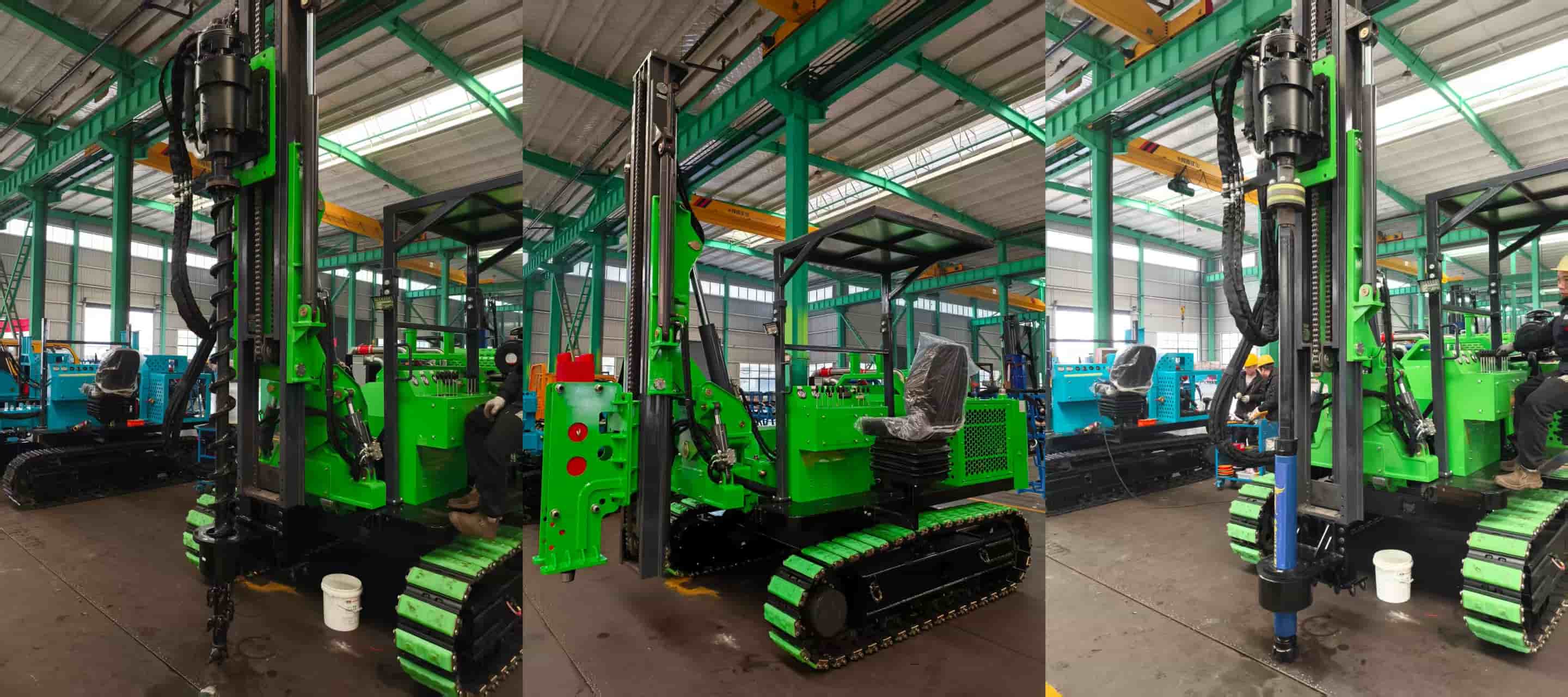 2. الحفر اللولبي للتربة الرخوةبالنسبة للمناطق ذات التربة الرخوة أو الرملية، تم تجهيز الآلة بعزم دوران عالٍ ملحق المثقبوهذا يسمح بالحفر المسبق السريع، مما يضمن أساسًا متينًا لأنظمة تركيب الألواح الشمسية في الأراضي الرخوة.